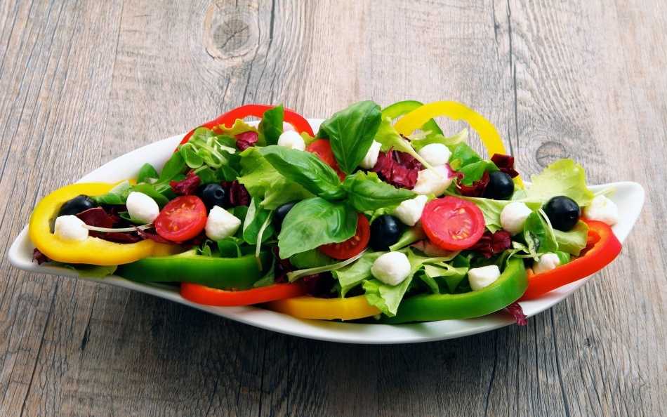 Существует несколько самых популярных способов украсить салат болгарским перцем: