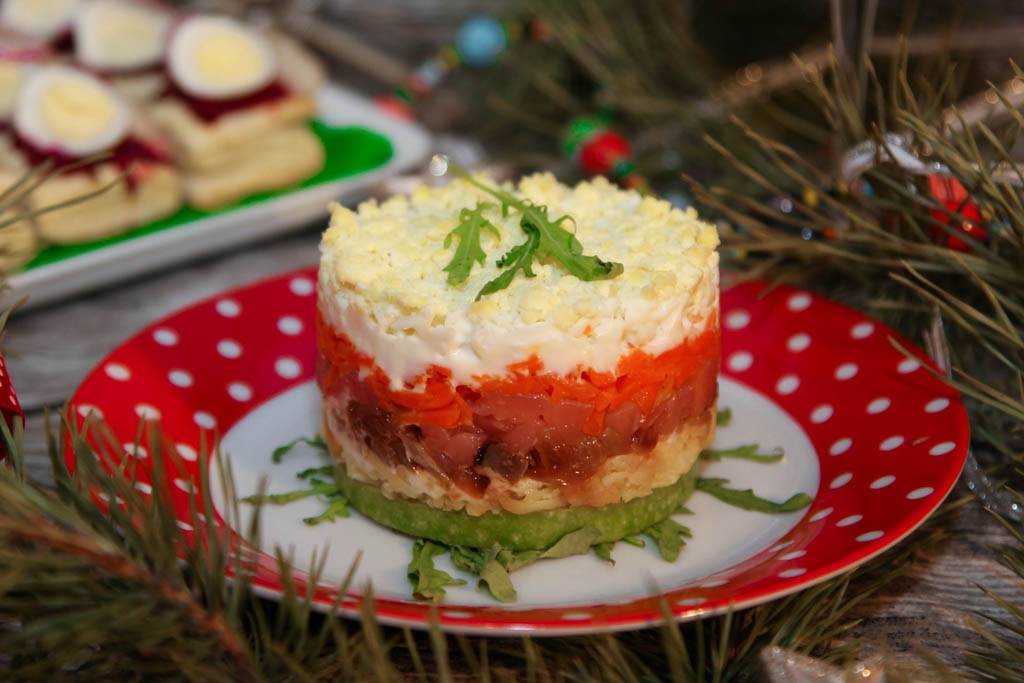 Красиво и нестандартно будет смотреться «Селедка под шубой», оформленная открытыми слоями. Главное — хорошо очистить ее от костей. Так ее можно будет сделать порционно на каждого гостя. А чтобы слои получились идеально ровными, используй специальную круглую форму без дна.