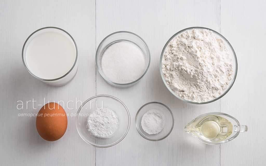 Вот все ингредиенты, которые нам понадобятся. С указанным количеством сахара (30 г), панкейки получаются не очень сладкие, подойдут и для тех, кто ест их со сладкими добавками, и для тех, кто предпочитает несладкие (например со сметаной или сыром). Но всё же, если вы любите послаще, добавьте ещё сахара. Также можно экспериментировать со вкусами и добавить, например, ванильный сахар или корицу.