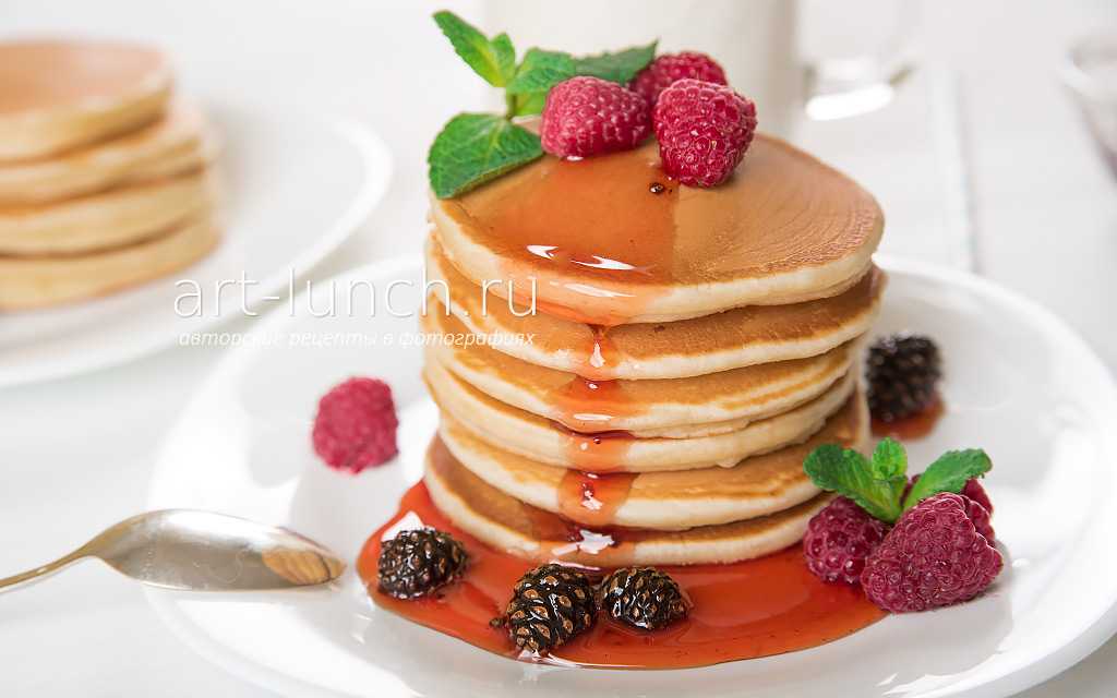 Американские блинчики (панкейки) в отличие от русских блинов меньше по размеру. Тесто по консистенции похоже на тесто для оладий. Панкейки жарят на сухой сковороде, без добавления масла….