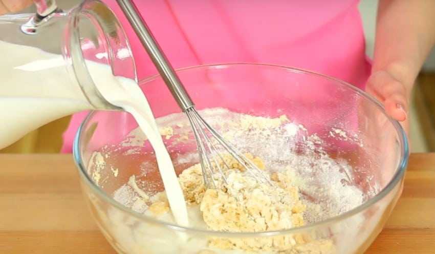6. Теперь вливаем в смесь оставшееся молоко и снова перемешиваем до однородности.