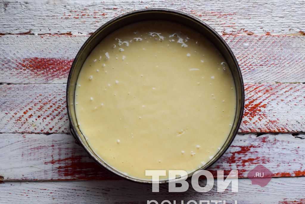- Вылейте в форму жидкое тесто, разровняйте края.