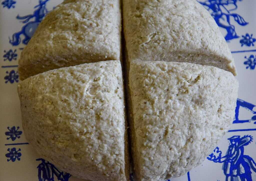 - Если замес происходит сложно (тесто рассыпается), то подогрейте его в течение 30 секунд в микроволновке. Оно станет податливее.