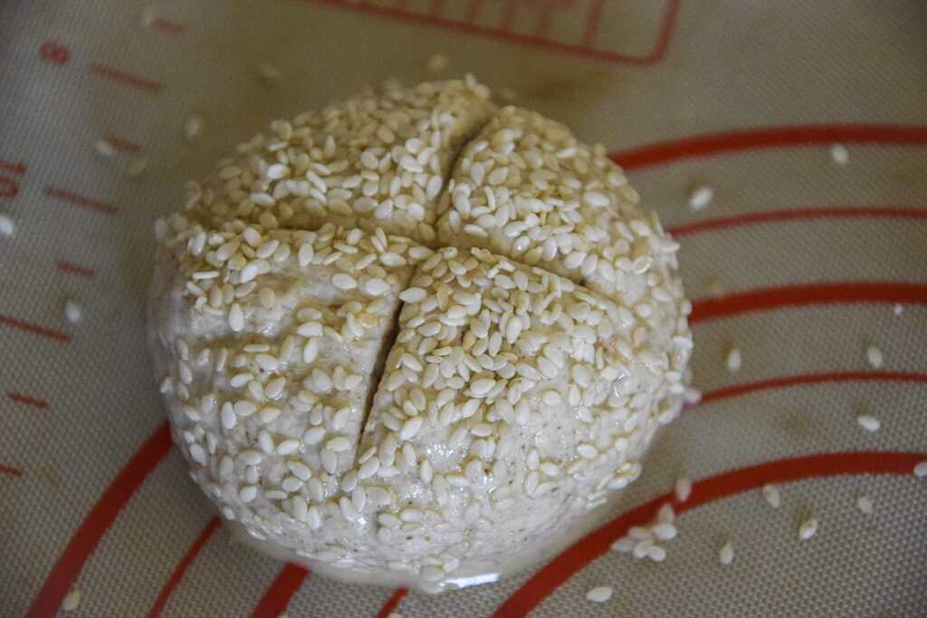 Но это не страшно. Не смотрите, что они получаются не идеально круглые, во время запекания они будут подниматься и выровняются. Посыпаем заготовки кунжутом.