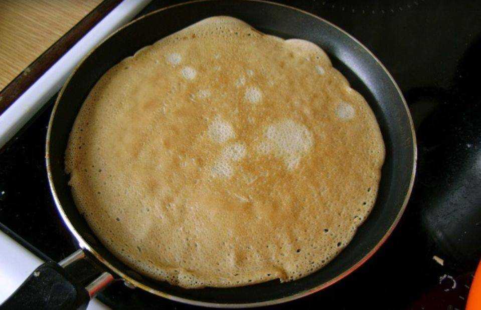 Чтобы достигнуть оптимальной температуры и влажности при выпекании, можно закрывать сковороду крышкой и открывать ее только для переворачивания блинчика лопаткой.