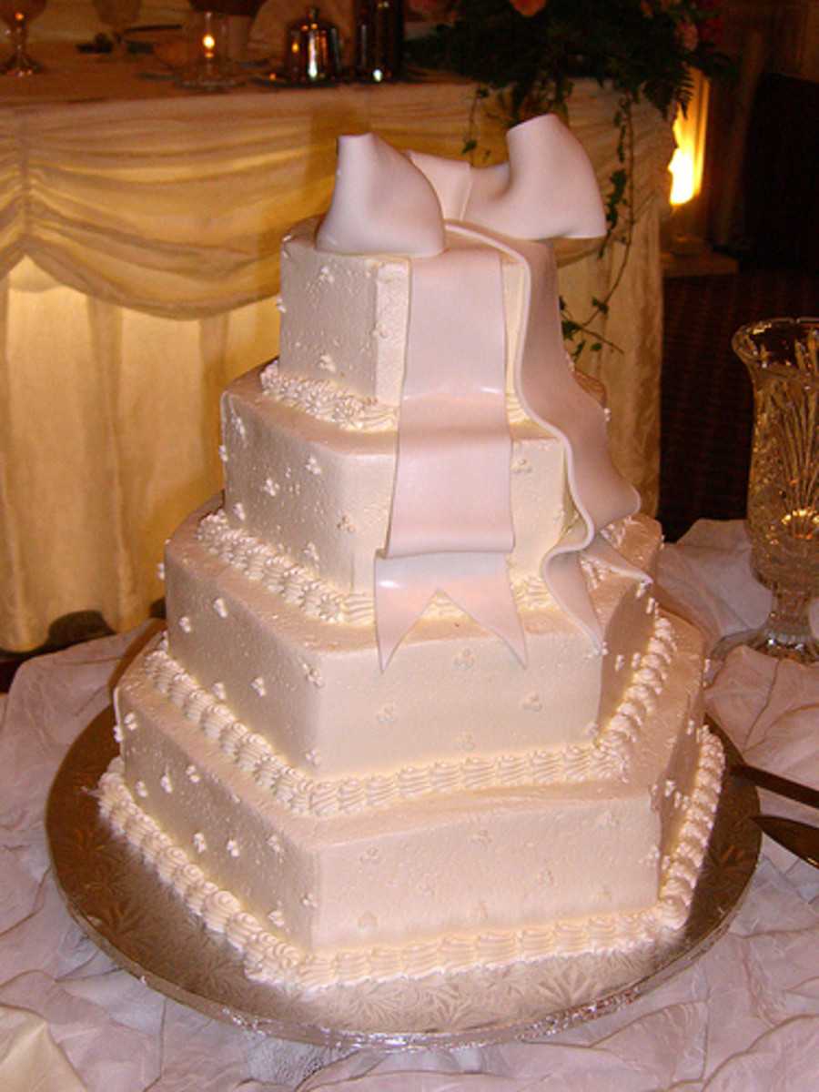 Сейчас фантазия многих молодых пар, готовящихся к свадебному банкету, не ограничивается исключительно традиционным «многоэтажным» тортом круглой формы. В классическом варианте коржи для приготовления торта делают круглой, квадратной или прямоугольной формы или в форме сердечка. Но все больше и больше влюбленных хотят удивить своих гостей и заказывают торты шестиугольной и восьмиугольной формы, в форме цветка, лебедя, замка, фонтана. Кому на что хватит фантазии.