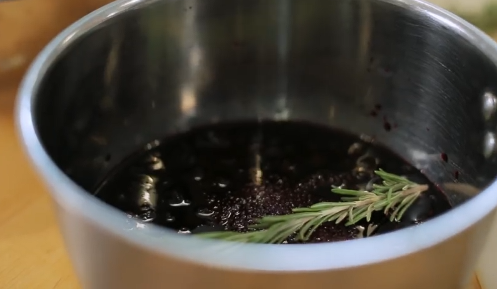 4. За это время готовим черничную начинку. Чернику нужно поварить на медленном огне в течение 10 минут, добавив сахар и веточку розмарина. Розмарин обладает ярко выраженным ароматом, поэтому десерт получится более оригинальный.
