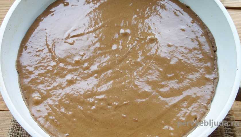 - Следует выложить яблоки на дно формы, смазанной сливочным или растительным маслом, а затем влить приготовленное тесто.