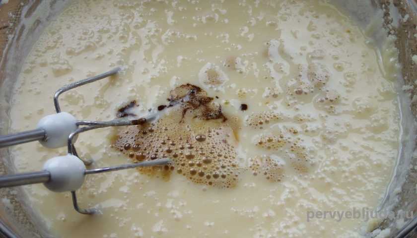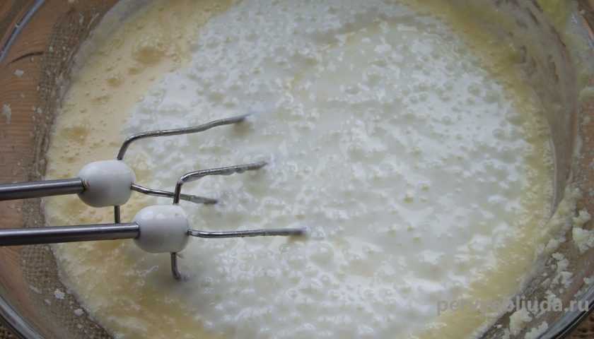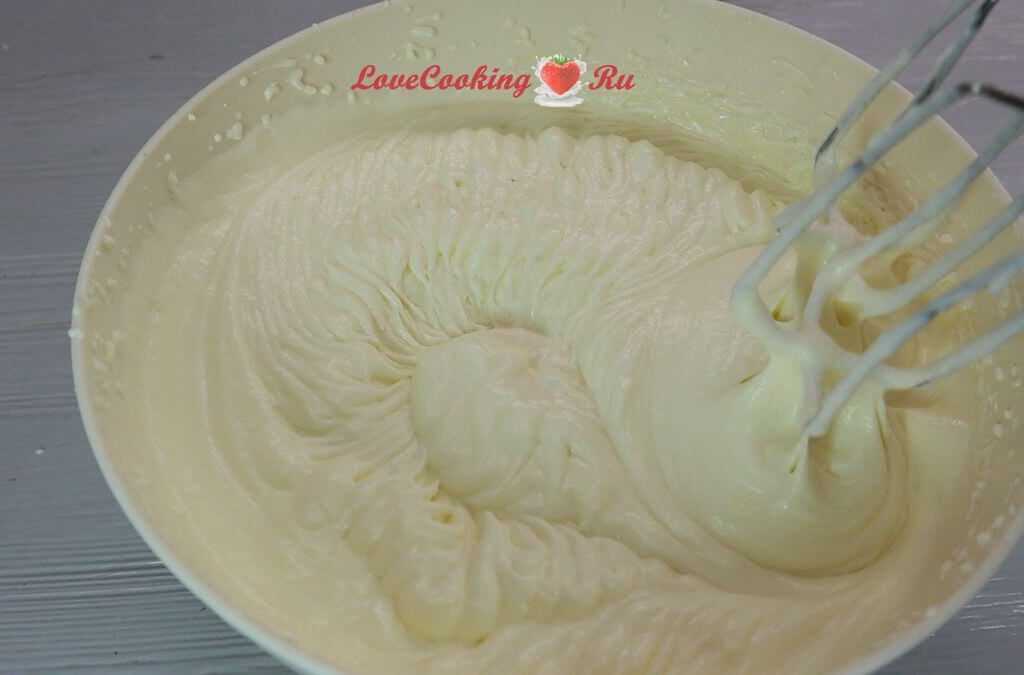 - Взбивайте до образования пышной пены. Если крем задерживается на венчике, значит все готово
