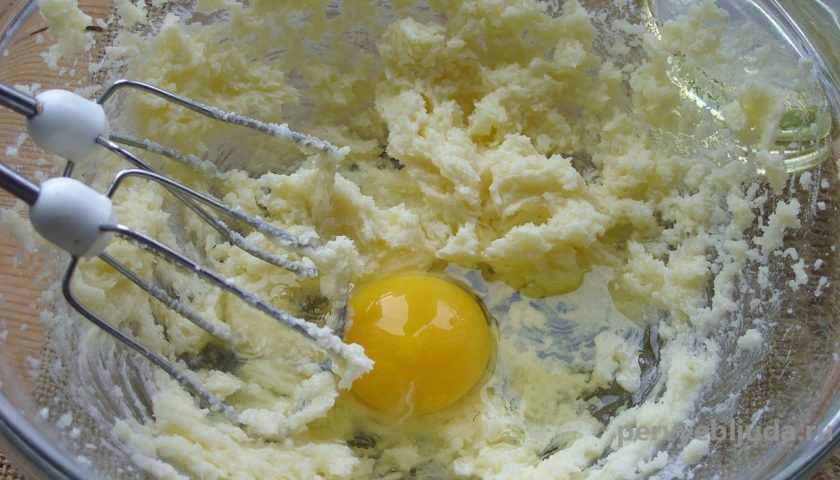 - Необходимо соединить рикотту с сахаром и взбить с помощью миксера до однородности, затем нужно ввести желтки и еще раз перемешать смесь.