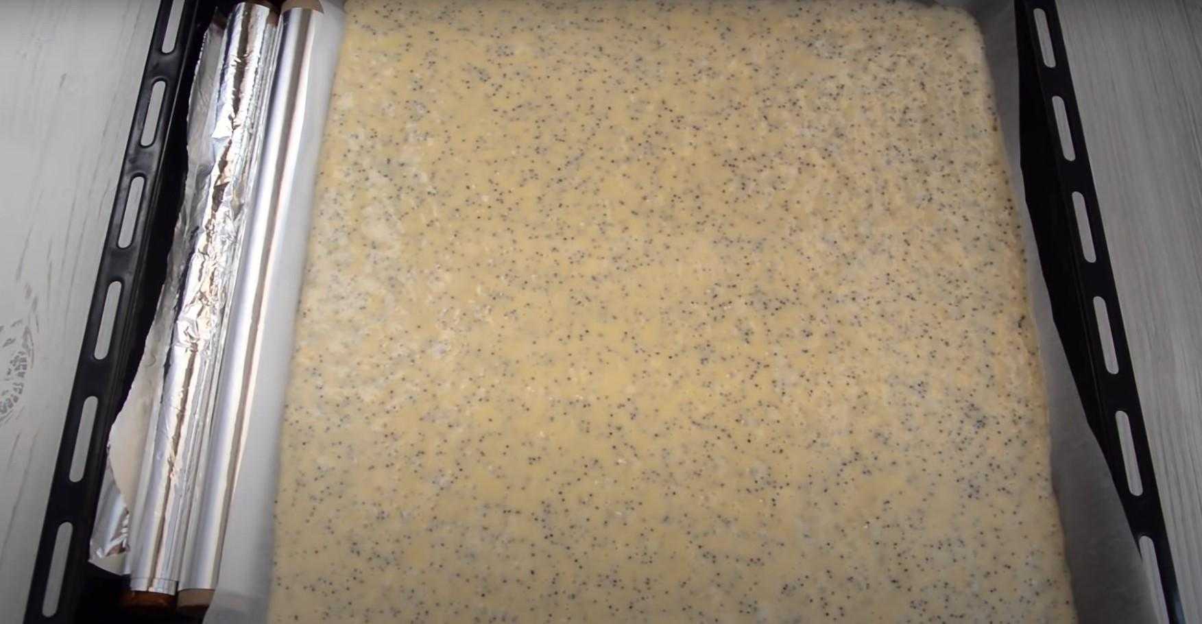 5. Третий корж готовим по тому же принципу, только в тесто добавляем мак.
