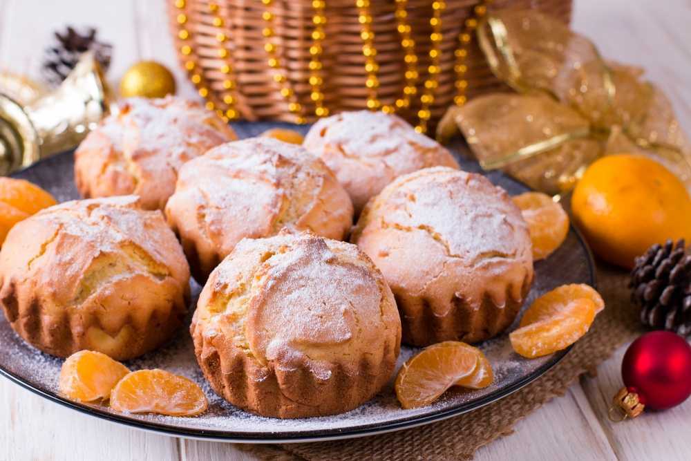 Эти мандариновые кексы станут настоящим украшением новогоднего стола. Их желательно приготовить за день до торжества, ведь цитрусовая выпечка становится особенно вкусной и ароматной на вторые сутки. Перед подачей украсьте кексы сахарной пудрой и дольками мандаринов, и можно начинать чаепитие. Кстати, такие кексы можно подарить как угощение друзьям или родным, упаковав в красивую праздничную упаковку.
