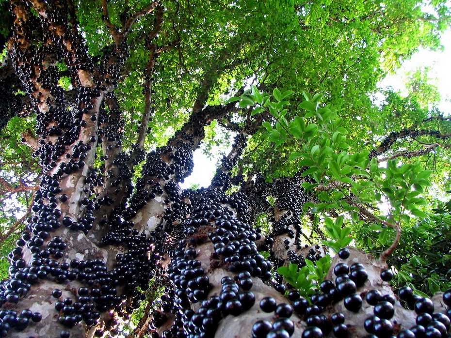 Созревшие плоды дерева джаботикаба являются костянками, которые имеют круглую либо эллиптическую форму. Их поверхность — глянцевая с очень красивой темно-бордово-фиолетовой окраской. Ягодки напоминают всем известный виноград, только на кончиках этих ягодок присутствуют остатки чашелистиков.