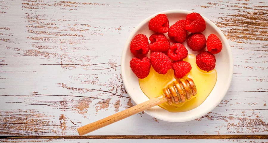 Своеобразное сладкое блюдо получается из сочетания свежих ягод в медовой заливке.