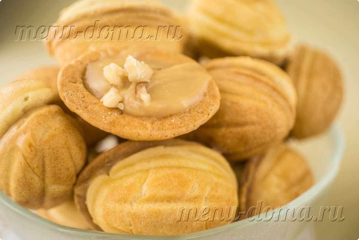 Советское печенье на майонезе в виде аппетитных орешков готовится посредством применения специальной формы, в которой выпекаются хрустящие, песочные ореховые половинки. Начинкой может быть крем из сгущенки и сливочного масла, к которым зачастую добавляют крошки из обрезков и измельченные орехи.