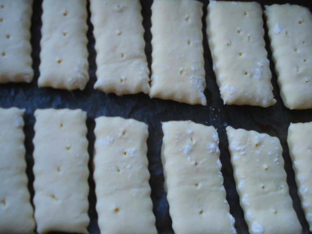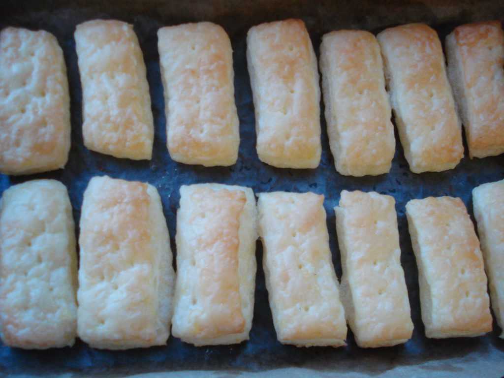 Складываем тесто несколько раз, до тех пор, пока толщина слоек буде около 1 см.Острым ножом разрезаем тесто на небольшие порционные кусочки.