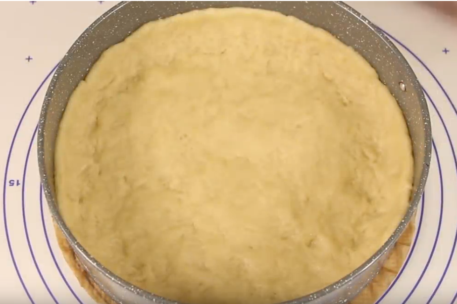 6. Раскатываем тесто по дну форму и отправляем выпекаться 15-20 минут в духовке.