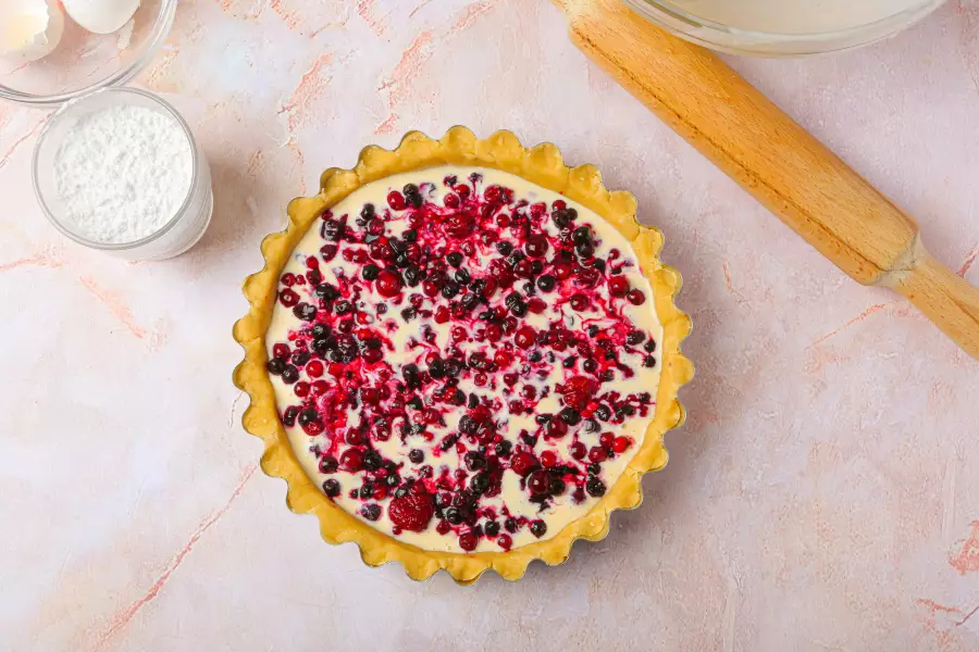 Для заливных пирогов начинку с ягодами готовят со сметаной или сливками. Экспериментируйте, не бойтесь совмещать разные ягоды и фрукты.