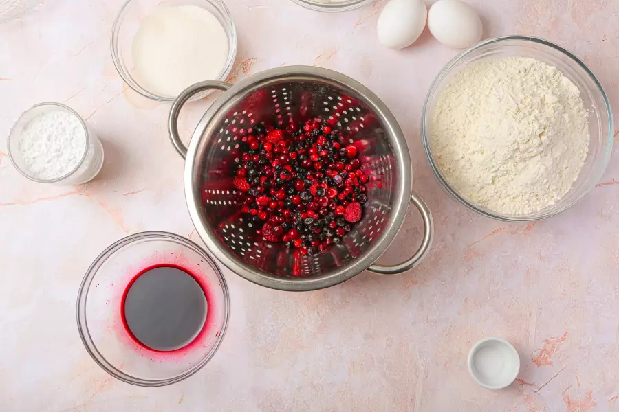 Шаг 1Ягоды (мы использовали замороженную ягодную смесь, при желании Вы можете выбрать любые ягоды) разморозьте при комнатной температуре и слейте лишнюю жидкость.