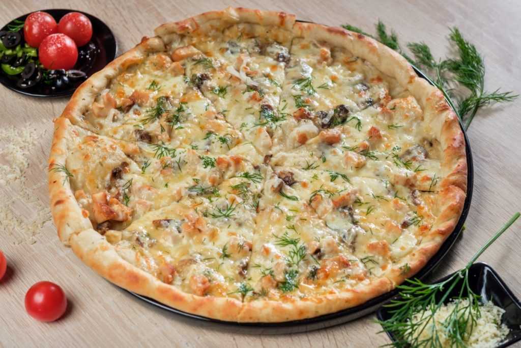 Пицца по этому простому рецепту получится не только вкусной, но и очень сытной. Ее можно легко приготовить «на скорую руку».