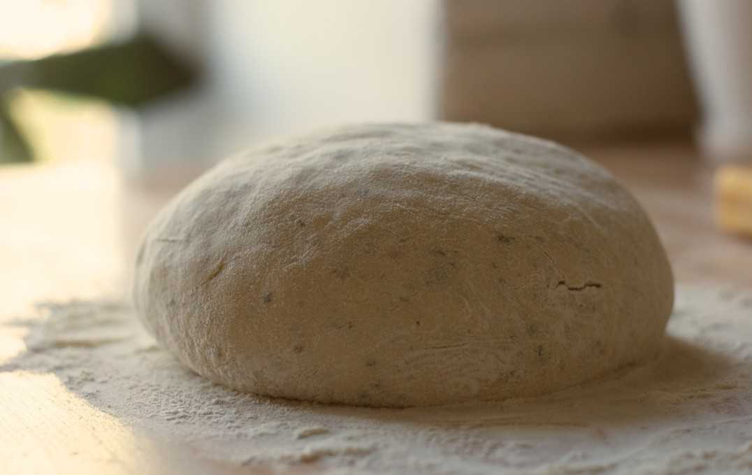- Добавить разведенные дрожжи в муку, вбить яйцо, налить масло и замесить тесто.