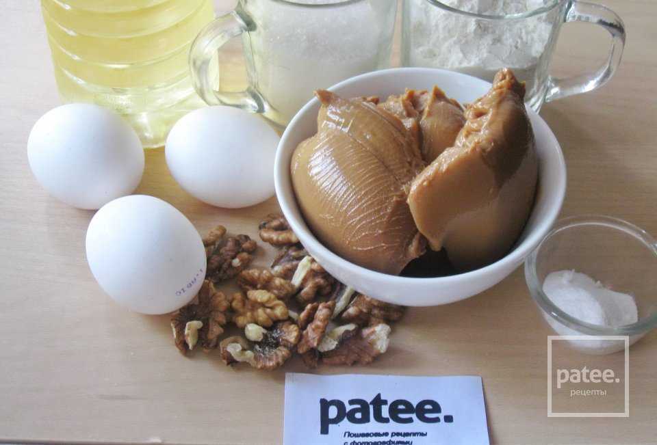 Ингредиенты для «Пирог с грецкими орехами и сгущенным молоком»: