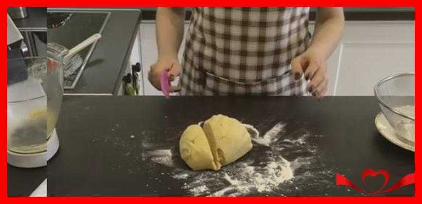 7. Разделите тесто на 2 неровные части. Я всегда режу тесто на глаз.