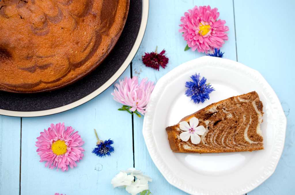 Достаньте форму, дождитесь, пока выпечка полностью остынет, осторожно снимите внешнее кольцо. Нарежьте шоколадно-ванильную «Зебру» порционными кусочками и подайте с любым подходящим напитком
