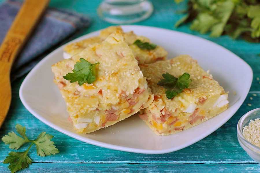 Заливной пирог с ветчиной и сыром