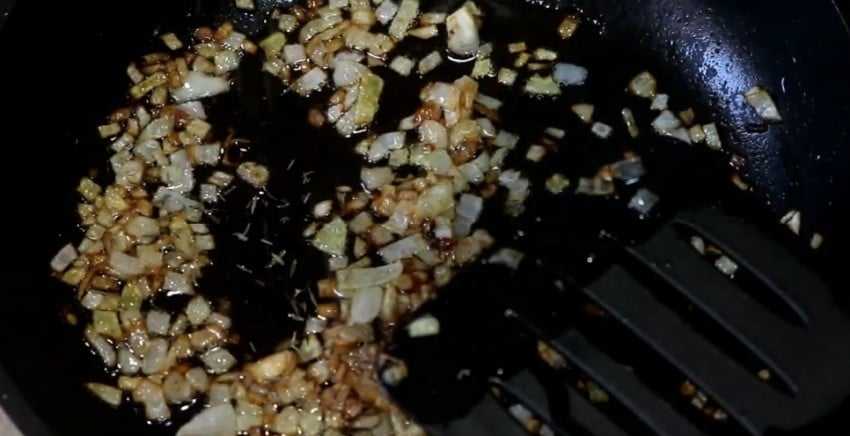 2. Лук нарежьте мелким кубиком, обжарьте его до золотистой корочки, слегка подсолите и добавьте тимьян или свои любимые специи.