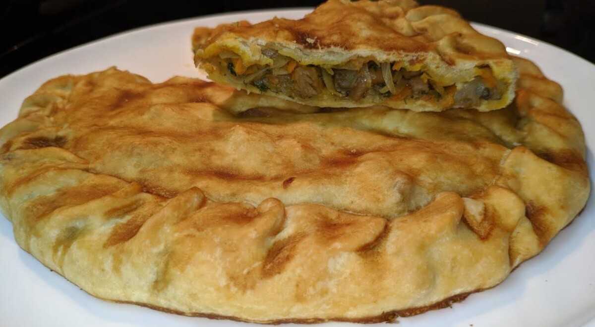 - Тщательно защипнуть края обеих лепешек, при желании смазать крепким сладким чаем и сделать в середине отверстие. Поместить в духовку, предварительно разогретую до 180 градусов, на 30 минут.