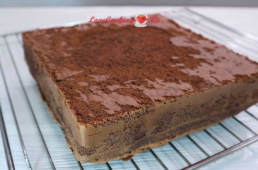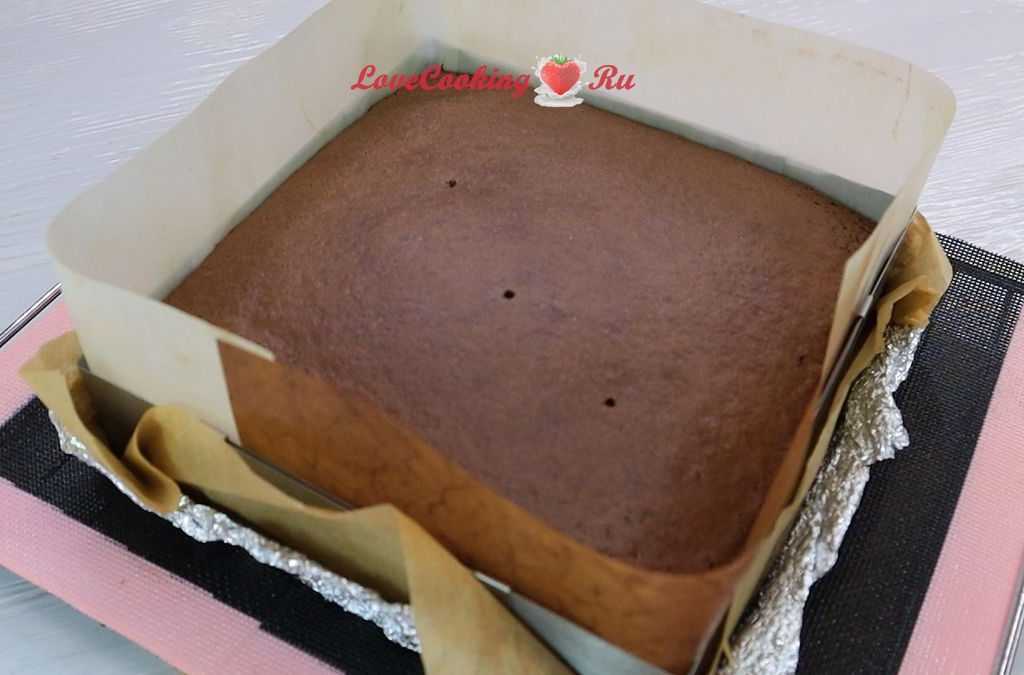 - Готовому бисквиту дать остыть, извлечь из формы. Оставить настояться на 5-6 часов, после чего разделить на 3 коржа.