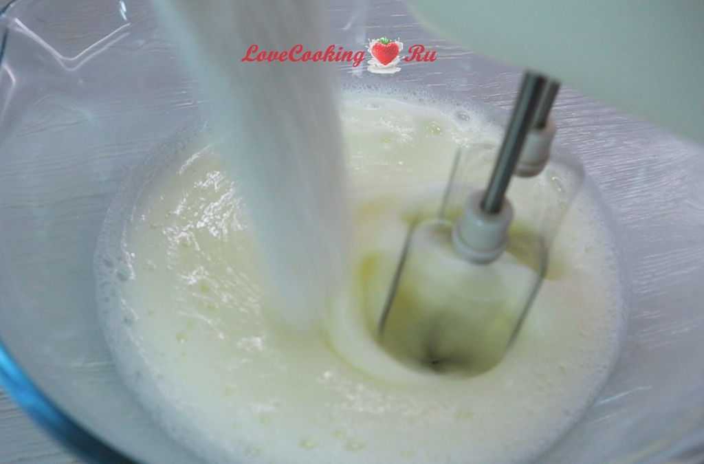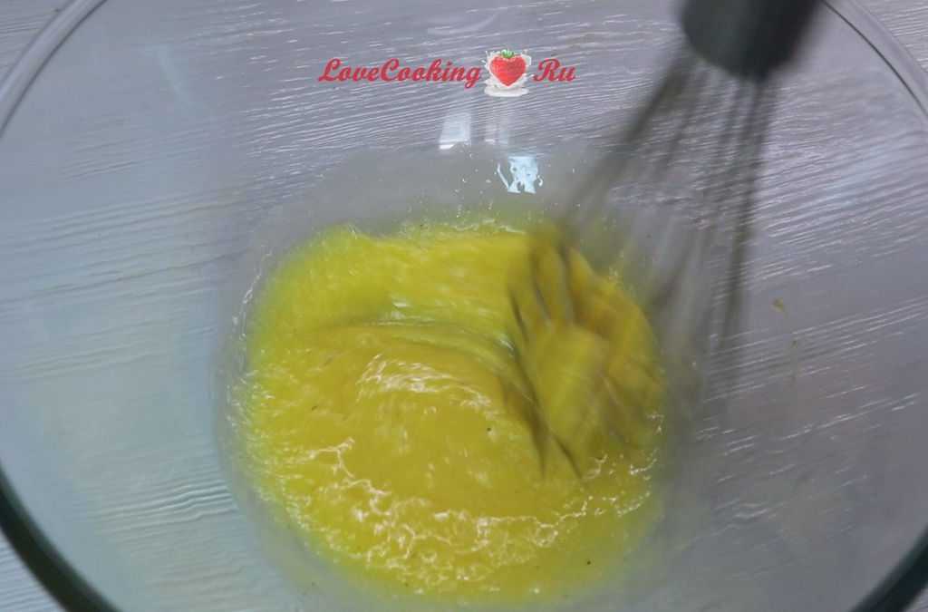 13. Желток и яйца взбейте с крахмалом, чтобы не образовывались комки.