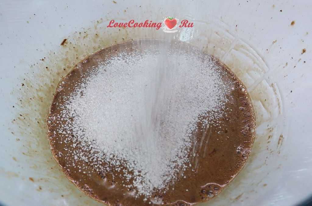 - Муку смешать с крахмалом и разрыхлителем, просеять.