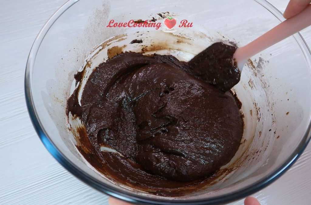 8. В практически готовое тесто по 2 ложки добавляйте готовые белки и завёртывающими движениями деревянной лопатки перемешайте.