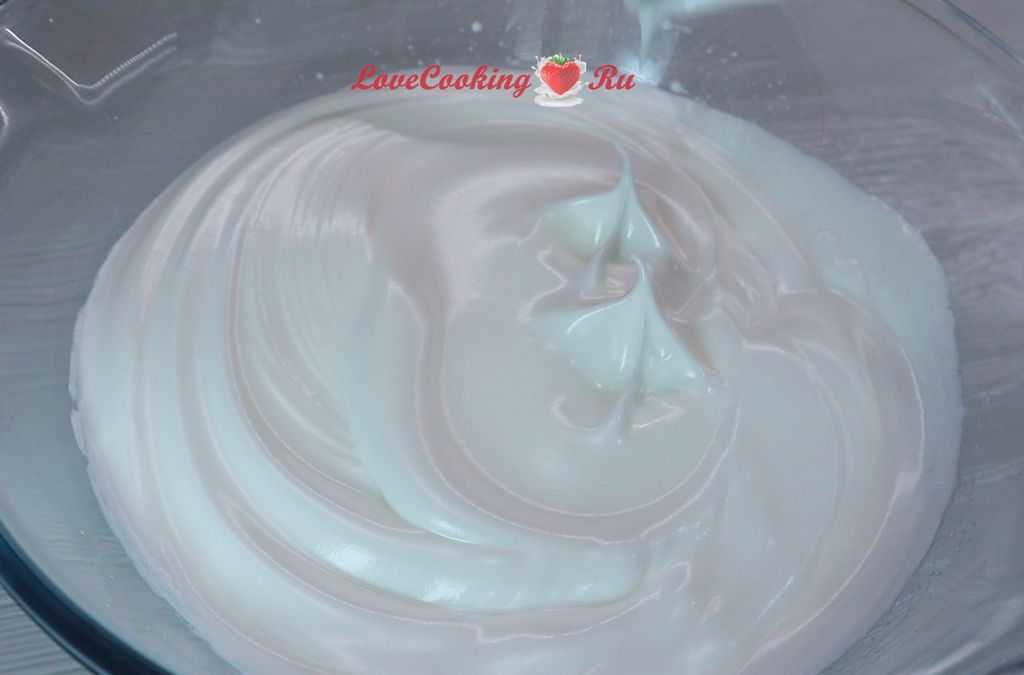 - Желатин разогреть до более жидкой консистенции, помешивая, добавить в крем.