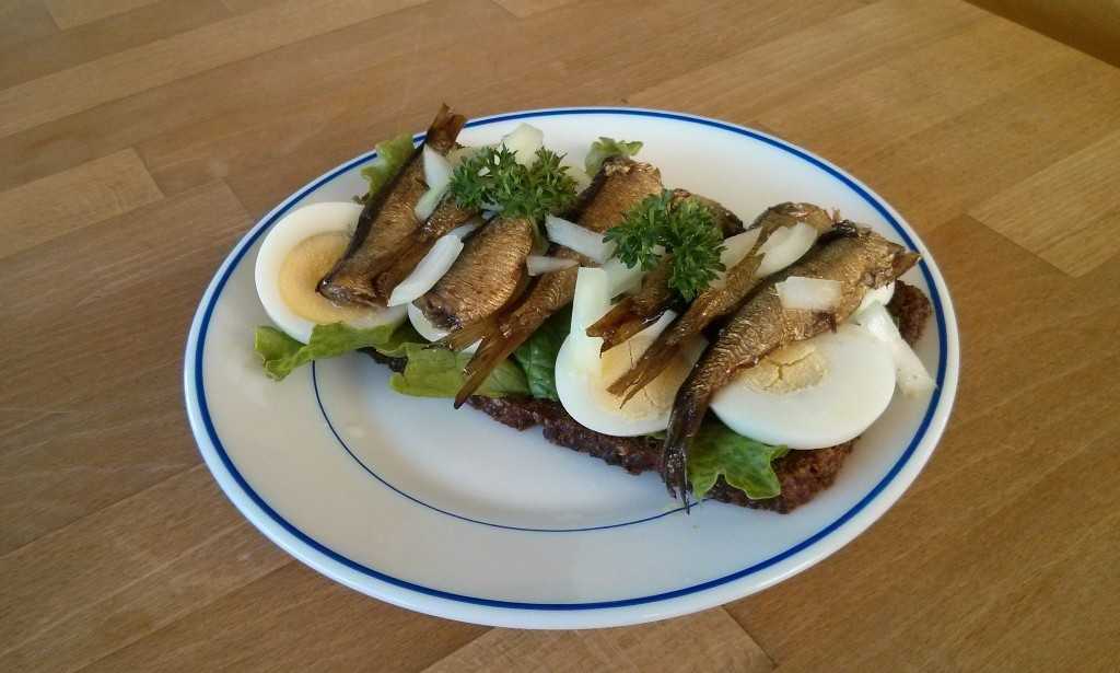 Шпроты с яйцом на черном хлебе