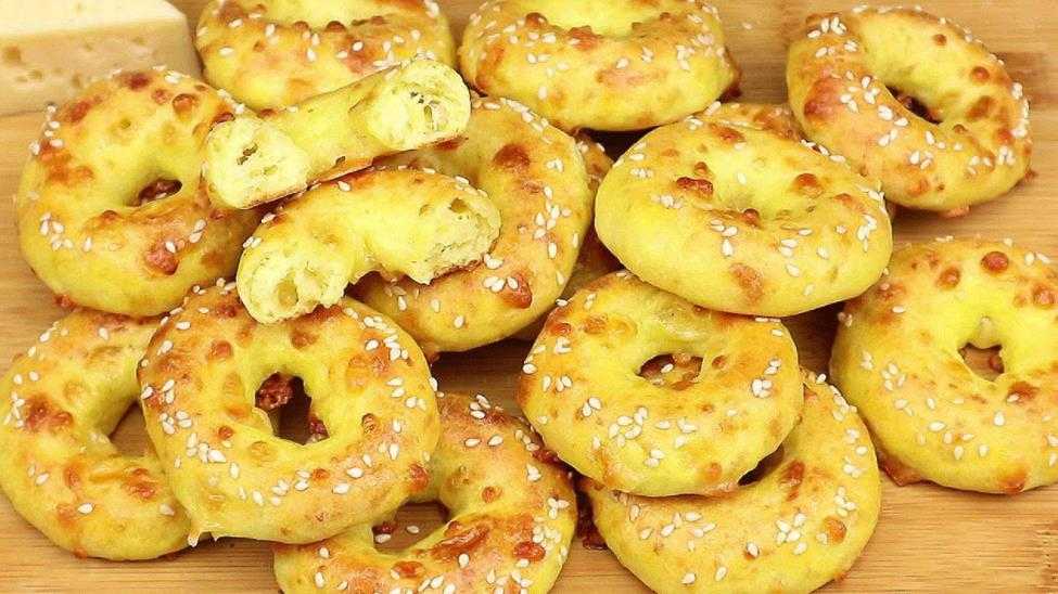 - Скатать из шариков заготовки в виде шайб, смазать взбитым яйцом и притрусить кунжутом. Запечь в духовке, разогретой до температуры 180 градусов в течение 30-40 минут.