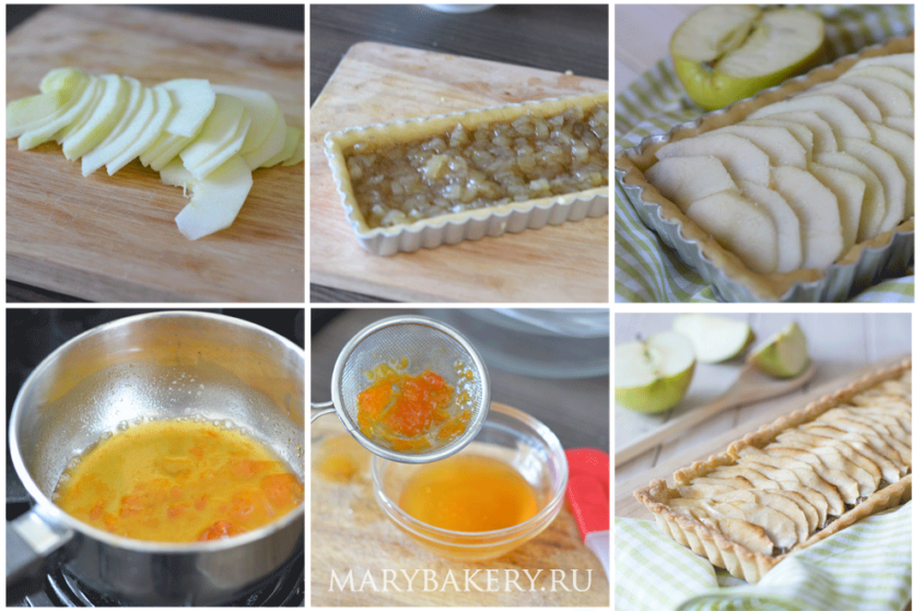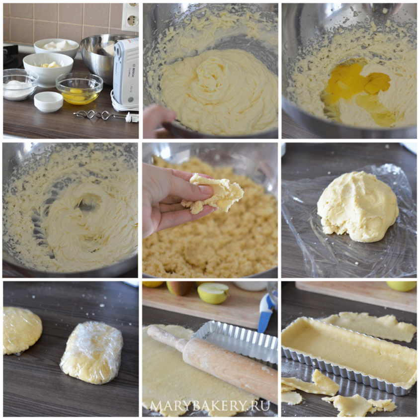 Собираю яблочный пирог из песочного теста с миндальной заливкой. Духовку на 195 градусов.