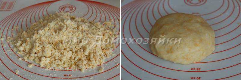 Должна получиться влажная крошка, которая легко собирается в единый комок. Если влаги от желтков мало, то введите в тесто 1-2 ст.л. ледяной воды или молока.