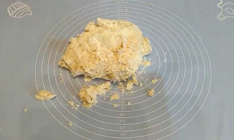 - Влейте в эту массу охлажденную яичную болтанку. Соберите все в комок. Тесто не месите, а заворачивайте от краев к середине.