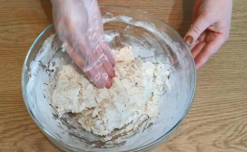 Месить массу в стеклянной миске, пока она не перестанет отлипать от стенок.