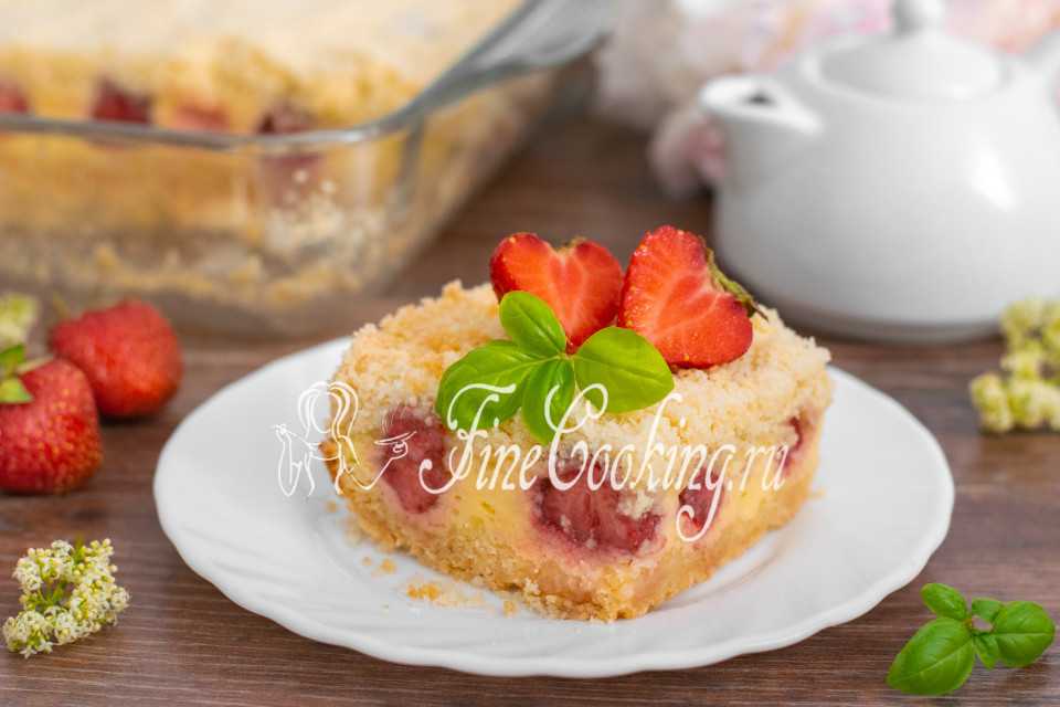 Даем пирогу немного остыть и можно нарезать его порционными кусочками. Рассыпчатый и одновременно нежный насыпной пирог с душистой клубникой станет подходящим дополнением к чашечке чая. Готовьте на здоровье, друзья, и приятного вам аппетита!