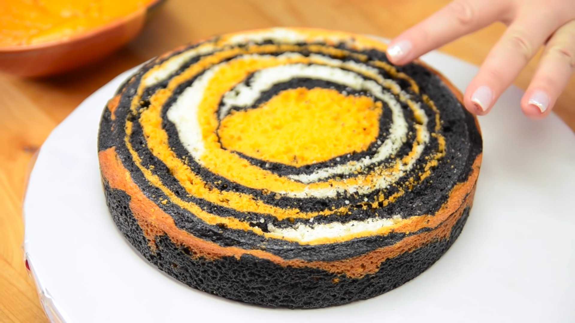 Стильный и эффектный тигровый торт станет замечательным украшением новогоднего стола. Для его приготовления вам понадобятся: любое бисквитное тесто, масляный крем, пищевые красители и немного фантазии. В разрезе торт получается очень ярким и красивым. Порадуйте своих близких таким роскошным праздничным десертом.