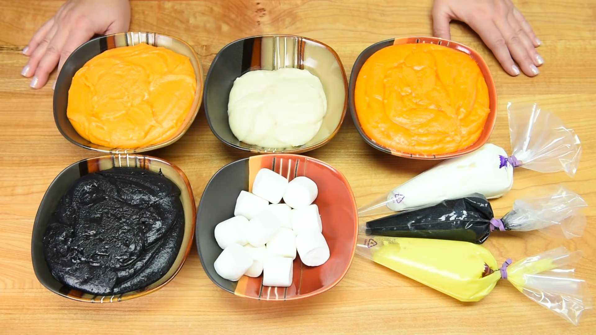 Из маршмеллоу и оранжевого крема делаем хвост.