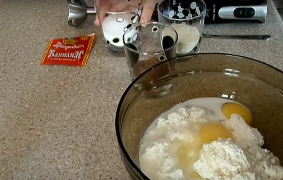 1. Нужно подготовить все ингредиенты. Творог постарайтесь купить более однородный. Яйца можно заранее вытащить из холодильника, чтобы они были комнатной температуры. Но это не обязательно.