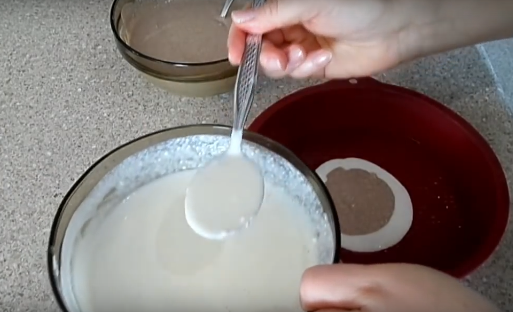 3. Белки взбиваем миксером с солью и сахаром до пышной пены. Добавляем их к кисломолочному продукту и аккуратно перемешиваем лопаткой.