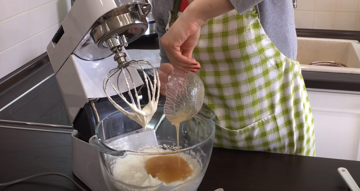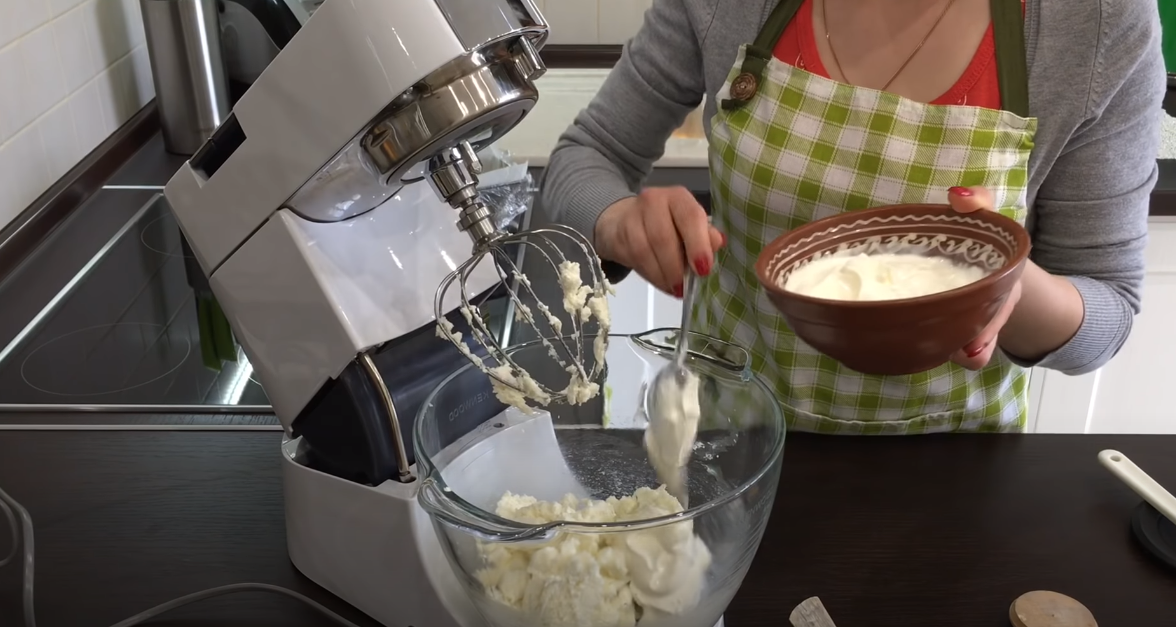 - Сливки взобьем миксером до густого состояния, начиная с малых оборотов и затем увеличив до максимума.