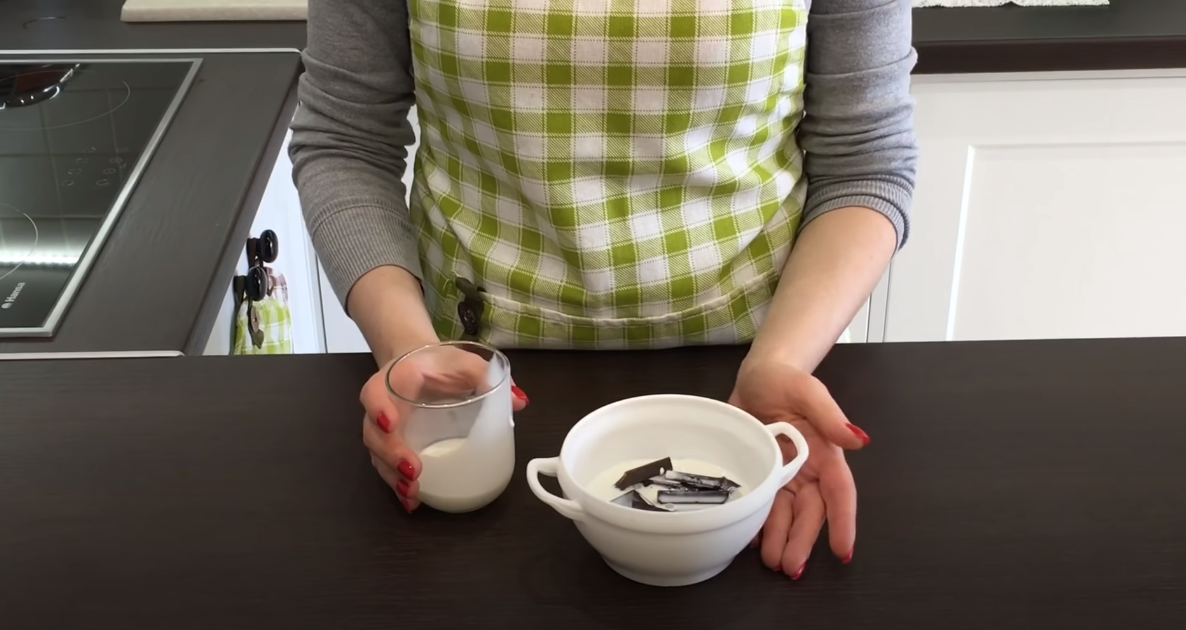 - Белый шоколад растопим до тягучего состояния в микроволновке (15-20 секунд) или на небольшом огне.