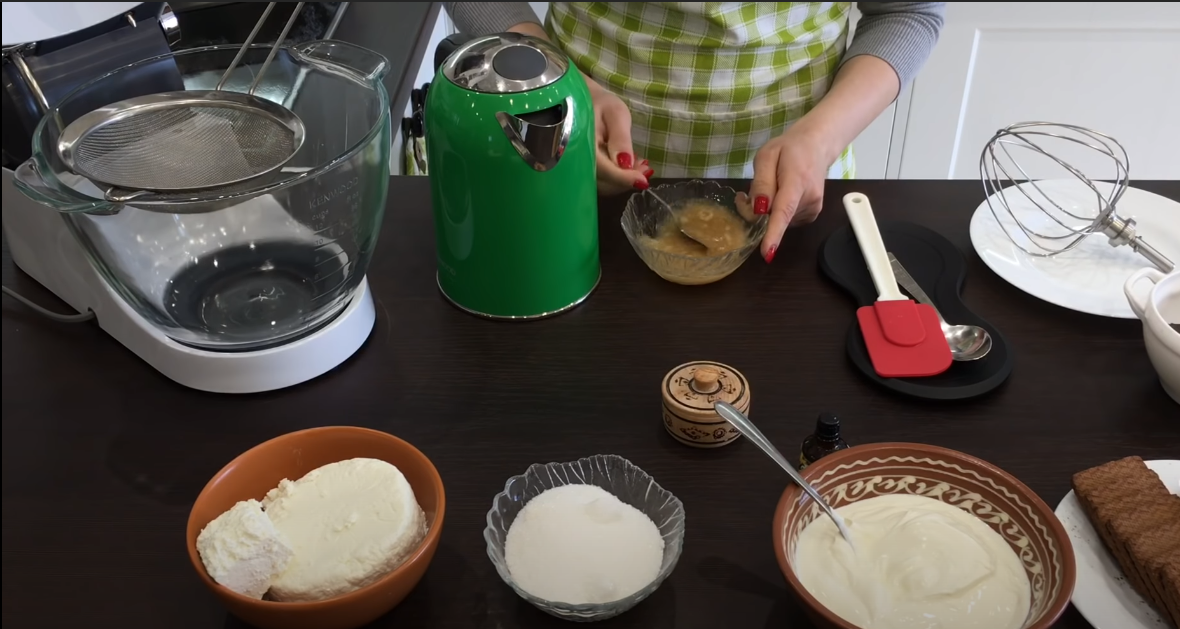 Сливочный сыр рекомендую достать заранее из холодильника. Он должен иметь комнатную температуру. Что касается сливок, то они напротив должны быть очень холодными.